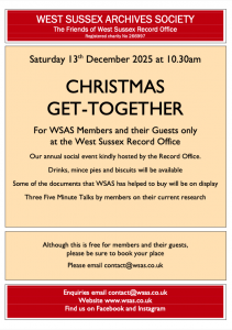 - December Get-together A festive morning at the Record Office with mince pies, wine and coffee; an opportunity to put questions to the County Archivist and an introduction to new aspects of West Sussex history.